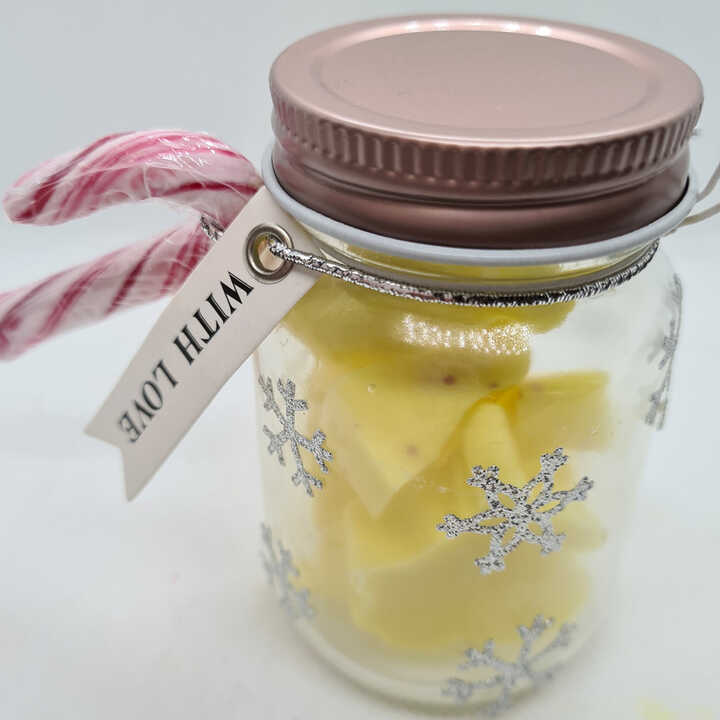 Nut cracker scented wax melts in a lovely little mason jar, perfect stocking fillers.